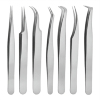 7PCS Silver Mirrored Eyelash Extensions Tweezers Set